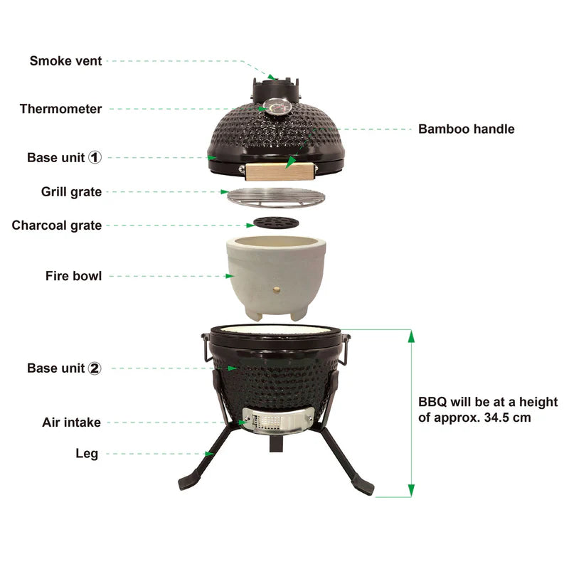 - Premium Build Quality: Constructed from high-quality ceramic, the Alfresco Kamado Lite offers superior heat retention, ensuring consistent cooking temperatures and exceptional flavor with every use. The sleek black finish adds a touch of elegance and sophistication to your outdoor setup.