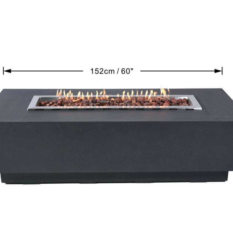 With its elongated form and refined Light Grey finish, the Granville adds a modern touch to any patio or garden. The powerful linear burner produces captivating flames that offer both visual appeal and comforting heat – perfect for entertaining guests or unwinding after a long day.