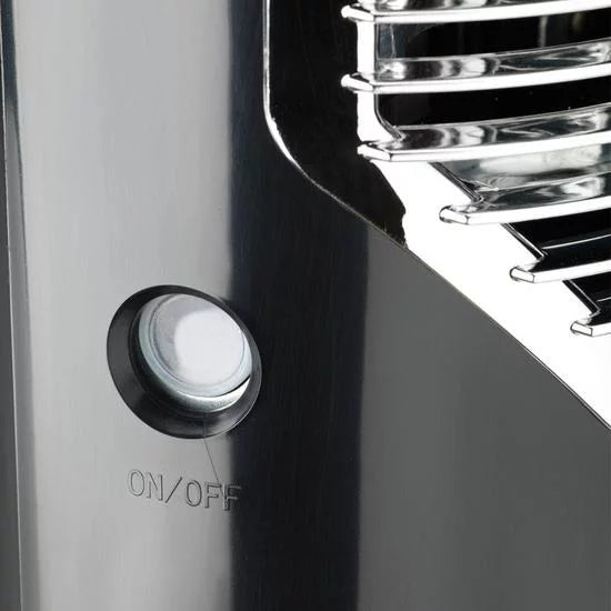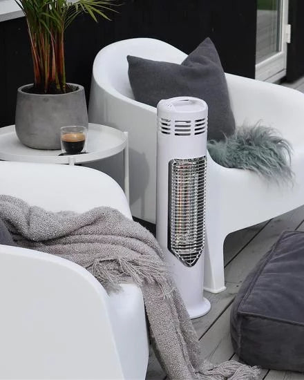 - Heater body in solid black or white plastic