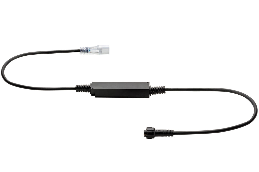 The led strip connector is used to connect the led strip. A cable of 1 metre is attached to the connector and has a male connector on the other end. Using the supplied female connector, the led strip can be connected.With the glue, you make the LED strip connector waterproof (IP67)!